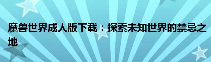 在广大游戏爱好者中,魔兽世界以其独特的魅力与丰富的游戏内容吸引了无数玩家。然而,今天我们要探讨的并非普通的魔兽世界,而是特定于“成人版下载”的魔兽世界。这是一个充满禁忌与神秘的世界,一个令人心动且充满诱惑力的游戏版本。