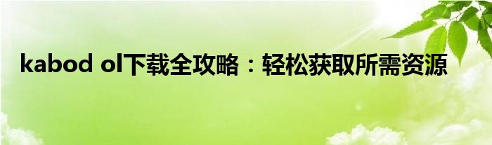 本文将为大家提供关于kabod ol下载的全面攻略,帮助大家轻松获取所需资源。