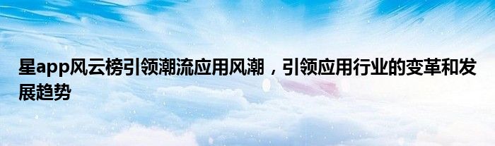 星app风云榜引领潮流应用风潮,引领应用行业的变革和发展趋势