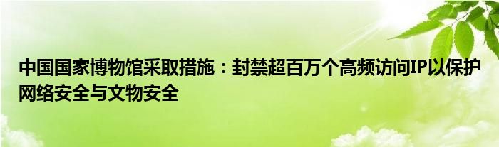 中国国家博物馆采取措施:封禁超百万个高频访问IP以保护网络安全与文物安全