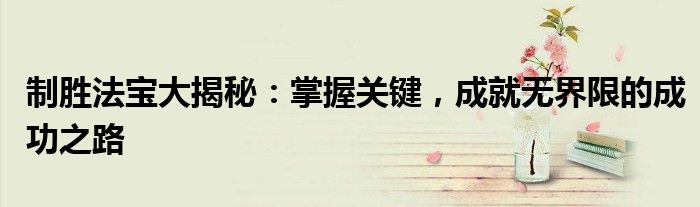 制胜法宝大揭秘:掌握关键,成就无界限的成功之路