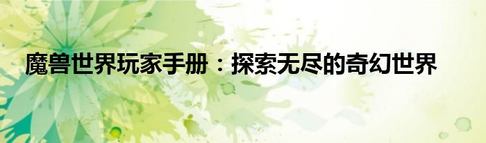 魔兽世界玩家手册:探索无尽的奇幻世界