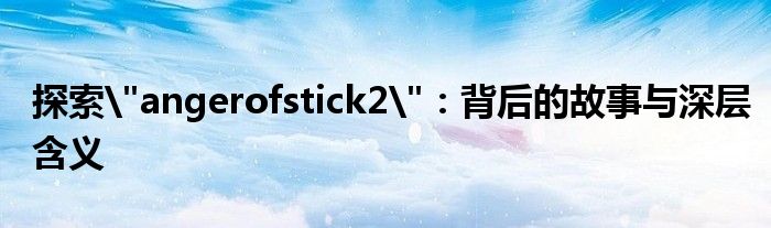 探索"angerofstick2":背后的故事与深层含义