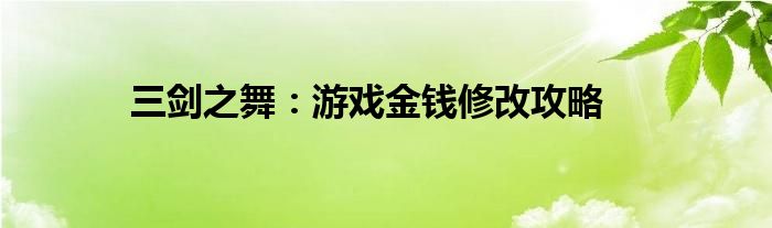 希望本文能够帮助大家更好地掌握三剑之舞游戏的金钱修改方法,提升游戏体验。