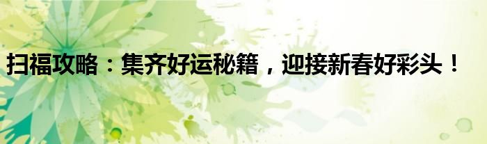 在参与扫福活动的同时,也别忘了收集各种好运秘籍。这些秘籍或许能为您在新的一年带来好运和吉祥。