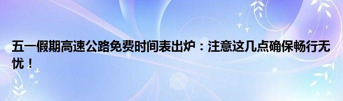 五一假期高速公路免费时间表出炉:注意这几点确保畅行无忧!