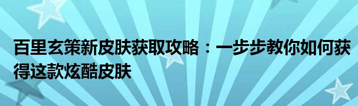 如果你是一位热衷于王者荣耀的玩家,那么对于百里玄策这个英雄的新皮肤,你一定不会错过。那么,如何获得这款炫酷皮肤呢?本文将为你提供详细的攻略。