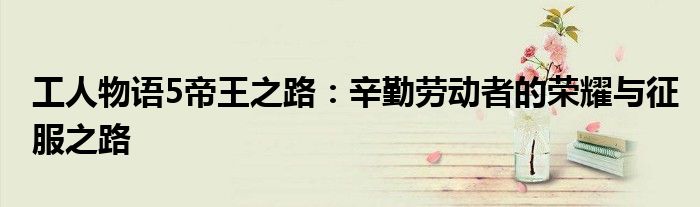 工人物语5帝王之路:辛勤劳动者的荣耀与征服之路