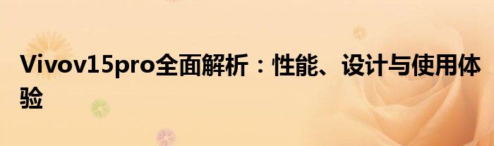 本文将全面解析Vivov15pro,包括其性能、设计以及使用体验。我们将深入了解这款设备的各个方面,帮助消费者更好地了解并选择适合自己的产品。