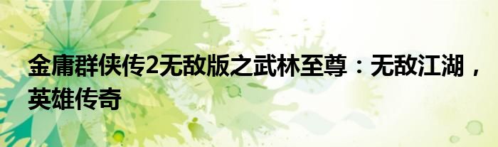 金庸群侠传2无敌版之武林至尊:无敌江湖,英雄传奇