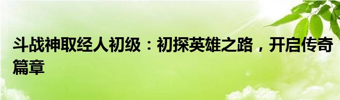 斗战神取经人初级:初探英雄之路,开启传奇篇章
