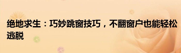 在热门游戏《绝地求生》中,很多玩家经常需要面对如何快速有效地跳出窗户而不被发现的情况。本文将介绍一种实用的跳窗技巧,让你在不翻窗户的情况下轻松逃脱,提高生存几率。