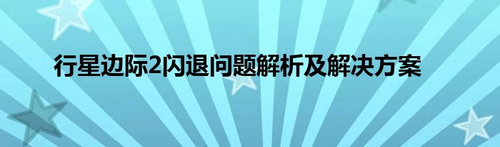 本文将针对《行星边际2》游戏中出现的闪退问题进行分析和探讨,提供可能的解决方案,帮助玩家解决游戏过程中的困扰。
