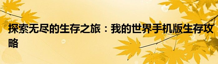 探索无尽的生存之旅:我的世界手机版生存攻略