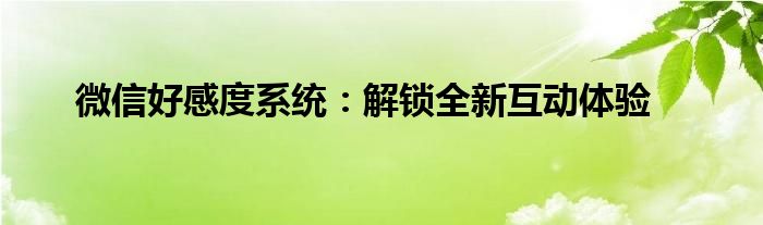 随着科技的发展和移动互联网的普及,社交媒体成为日常生活中不可或缺的一部分。微信作为最受欢迎的社交平台之一,不断推出创新功能以满足用户需求。其中,“微信好感度系统”便是微信团队最新的重要研发方向之一,它进一步增强了用户之间的互动体验,引领着社交媒体的新潮流。