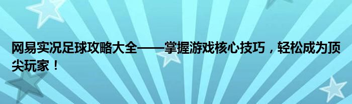 通过本攻略的学习和实践,玩家可以逐步掌握网易实况足球的核心技巧,提升游戏水平,轻松成为顶尖玩家。希望本攻略对广大玩家有所帮助。