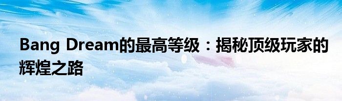 Bang Dream的最高等级:揭秘顶级玩家的辉煌之路