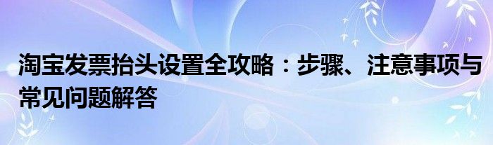 淘宝发票抬头设置全攻略:步骤、注意事项与常见问题解答