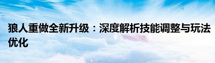 狼人重做全新升级:深度解析技能调整与玩法优化