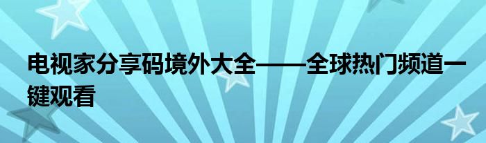 本文为你提供了丰富的“电视家分享码境外大全”,让你无论身处何地,都能轻松观看全球热门频道。希望这份分享码大全能为你带来全新的观看体验,让你感受世界各地的精彩内容。