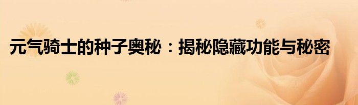 元气骑士的种子奥秘:揭秘隐藏功能与秘密