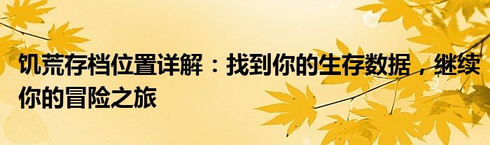 对于热衷于玩《饥荒》这款生存冒险游戏的玩家来说,存档位置无疑是一个重要的话题。了解饥荒存档位置,可以帮助我们在游戏过程中避免因意外导致的数据丢失,同时也可以在必要时备份存档,确保我们的生存冒险之旅能够持续进行。本文将详细介绍饥荒存档位置的相关知识。