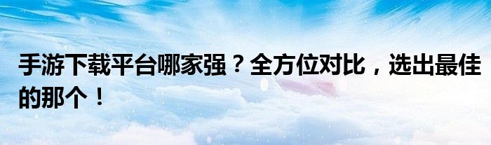 手游下载平台哪家强?全方位对比,选出最佳的那个!