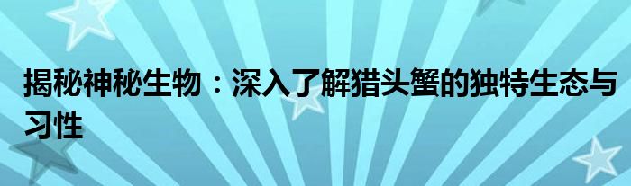 本文将带您深入了解神秘的“猎头蟹”,探讨其独特的生态习性、生活环境和可能的生存挑战。通过本文的阅读,您将对这个与众不同的生物有更深入的了解。