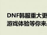 尊敬的DNF玩家们,一个令人振奋的消息传来!DNF韩服最近进行了重大更新,正式迎来了“大转移”时代。这一更新将带给玩家们全新的游戏体验和 浏览全文>>