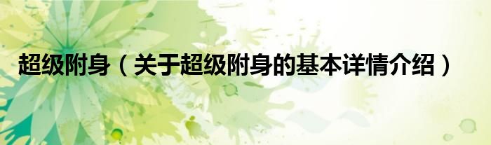 本文关于超级附身的基本详情介绍就讲解完毕,希望对大家有所帮助。