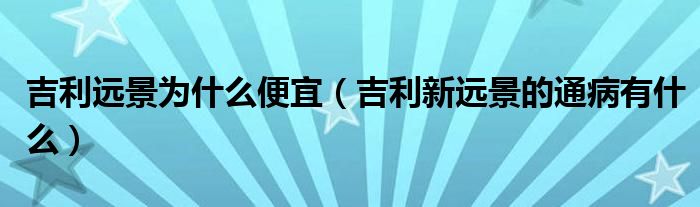 吉利远景为什么便宜(吉利新远景的通病有什么)