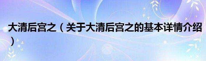 本文关于大清后宫之的基本详情介绍就讲解完毕,希望对大家有所帮助。