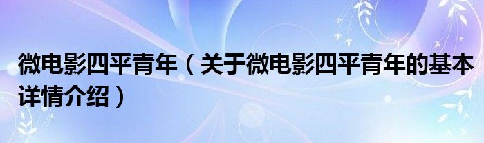 微电影四平青年(关于微电影四平青年的基本详情介绍)