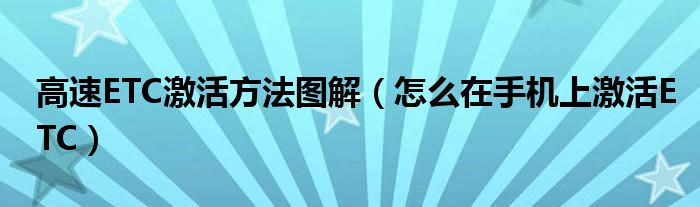 大家好,综合小编来为大家讲解下。高速ETC激活方法图解,怎么在手机上激活ETC这个很多人还不知道,现在让我们一起来看看吧!