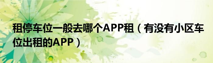 大家好,综合小编来为大家讲解下。租停车位一般去哪个APP租,有没有小区车位出租的APP这个很多人还不知道,现在让我们一起来看看吧!