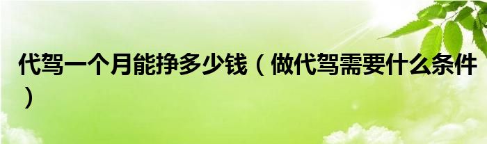 代驾一个月能挣多少钱(做代驾需要什么条件)