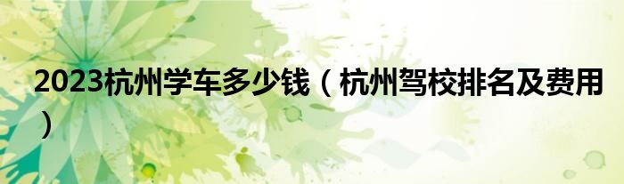 大家好,综合小编来为大家讲解下。2023杭州学车多少钱,杭州驾校排名及费用这个很多人还不知道,现在让我们一起来看看吧!