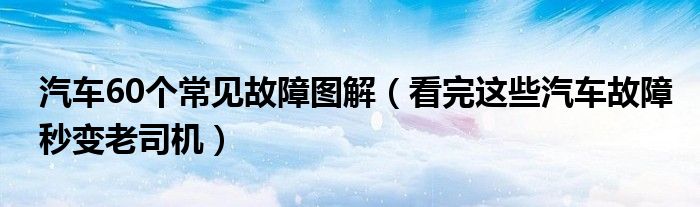 大家好,综合小编来为大家讲解下。汽车60个常见故障图解,看完这些汽车故障秒变老司机这个很多人还不知道,现在让我们一起来看看吧!