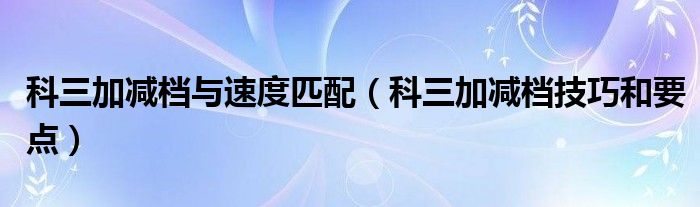 大家好,综合小编来为大家讲解下。科三加减档与速度匹配,科三加减档技巧和要点这个很多人还不知道,现在让我们一起来看看吧!