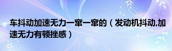 车抖动加速无力一窜一窜的(发动机抖动,加速无力有顿挫感)