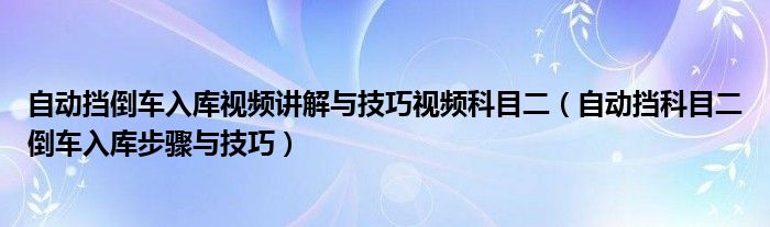 自动挡倒车入库视频讲解与技巧视频科目二(自动挡科目二倒车入库步骤与技巧)