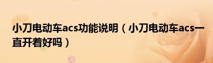 大家好,综合小编来为大家讲解下。小刀电动车acs功能说明,小刀电动车acs一直开着好吗这个很多人还不知道,现在让我们一起来看看吧!