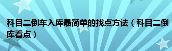 大家好,综合小编来为大家讲解下。科目二倒车入库最简单的找点方法,科目二倒库看点这个很多人还不知道,现在让我们一起来看看吧!
