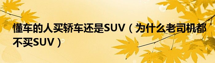 大家好,综合小编来为大家讲解下。懂车的人买轿车还是SUV,为什么老司机都不买SUV这个很多人还不知道,现在让我们一起来看看吧!
