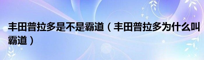 丰田普拉多很霸道。直到现在,很多人还在用霸道这个名字。之所以改名,是因为普拉多的广告与卢沟桥有关,卢沟桥具有特殊的历史意义,因此引起了很大的争议。丰田改名是为了让影响力慢慢消失。