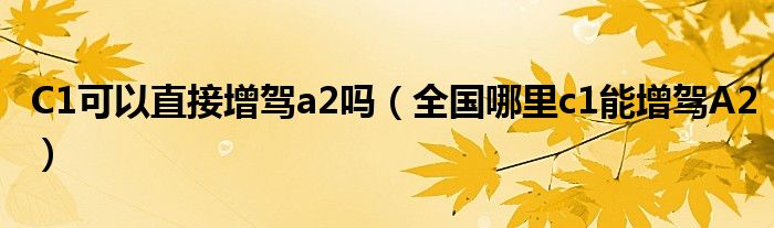 大家好,综合小编来为大家讲解下。C1可以直接增驾a2吗,全国哪里c1能增驾A2这个很多人还不知道,现在让我们一起来看看吧!