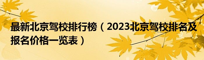 最新北京驾校排行榜(2023北京驾校排名及报名价格一览表)