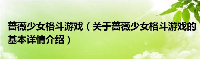 本文关于蔷薇少女格斗游戏的基本详情介绍就讲解完毕,希望对大家有所帮助。