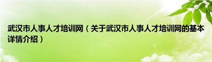 武汉市人事人才培训网(关于武汉市人事人才培训网的基本详情介绍)