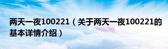 两天一夜100221(关于两天一夜100221的基本详情介绍)